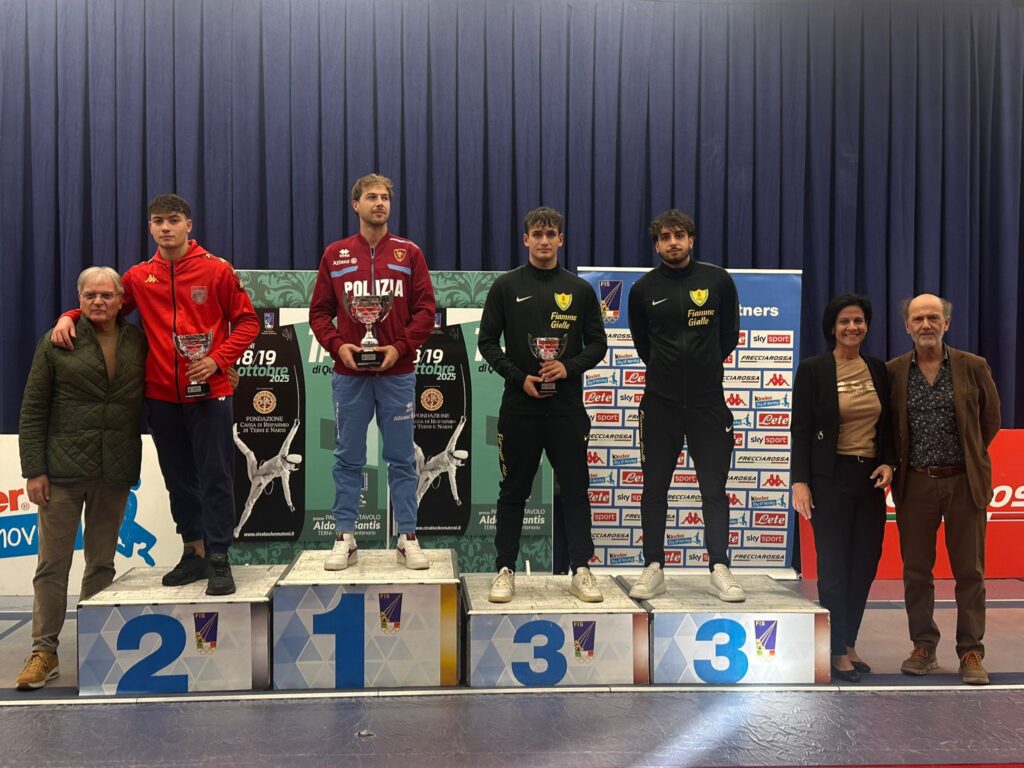 Una finale tutta foggiana a Terni nella sciabola maschile in occasione della prima prova nazionale di qualificazione Assoluti per la Zona 2: sul gradino più alto del podio sale Francesco Bonsanto delle Fiamme Oro che in finale ha la meglio all’ultima stoccata su Riccardo Maestri del Circolo Schermistico Dauno.